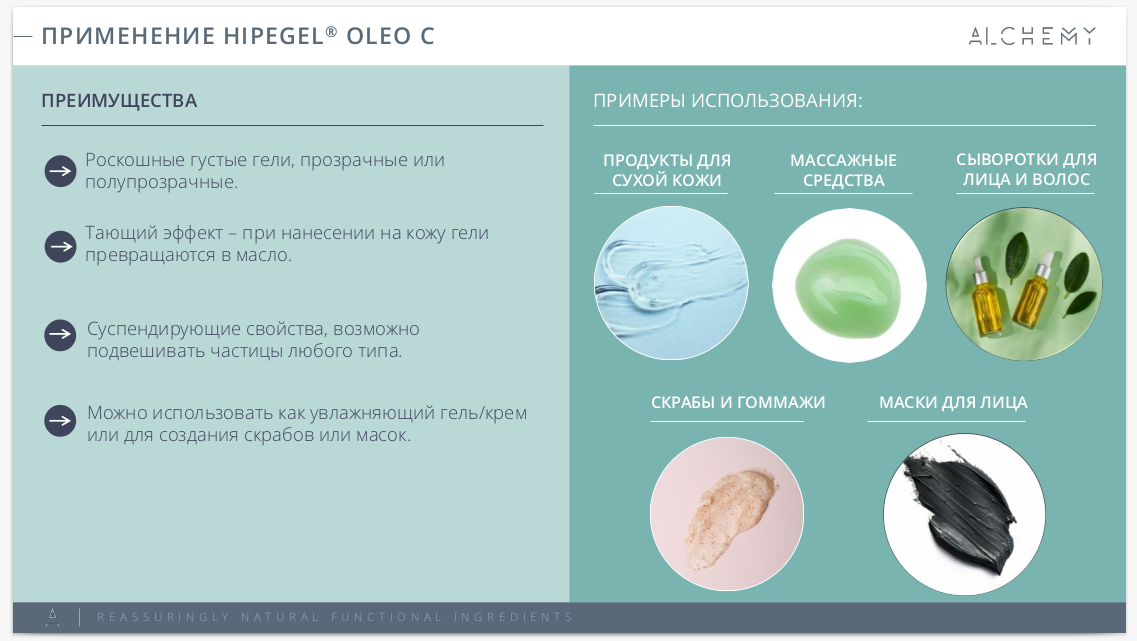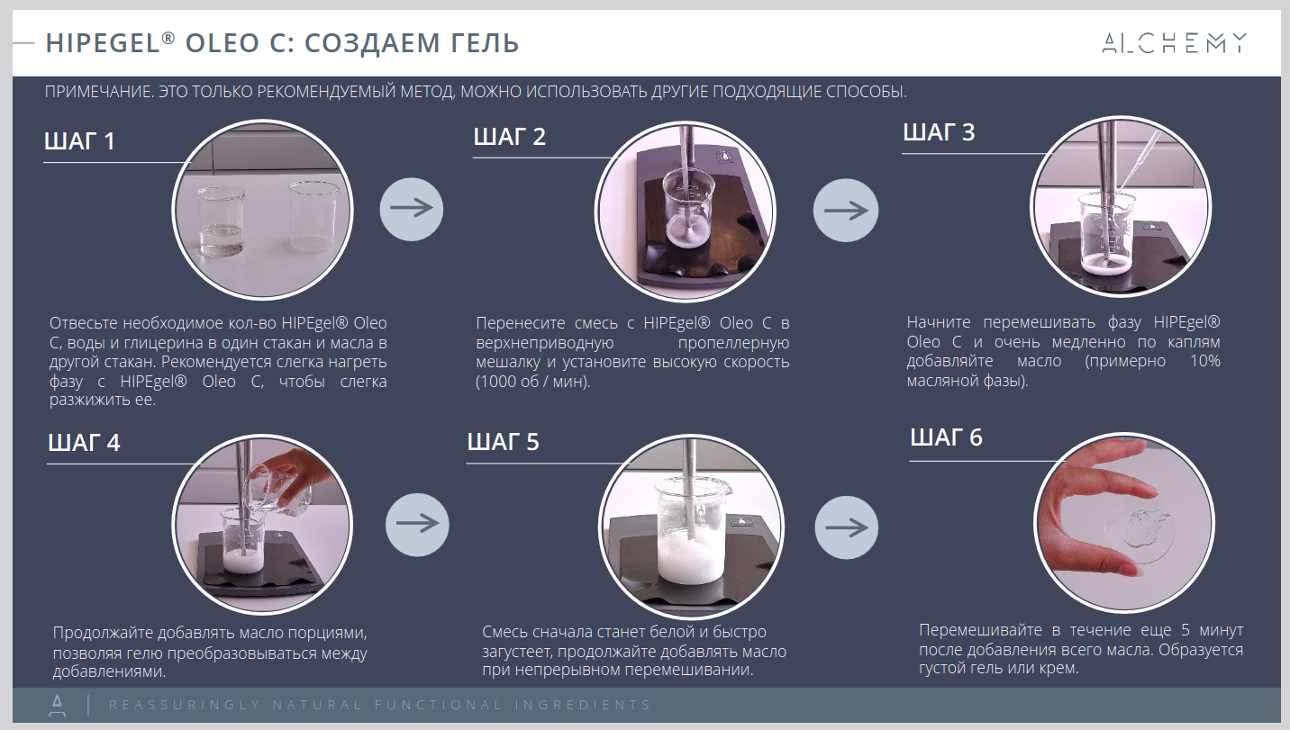 Примеры продуктов с использованием HIPEgel Oleo C: